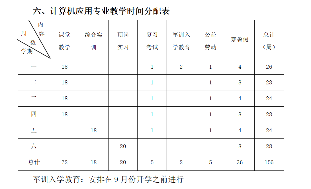 总课时 | 理论 学时 | 课内实训 | 一 | 二 | 三 | 四 | 五 | 六 | ||||